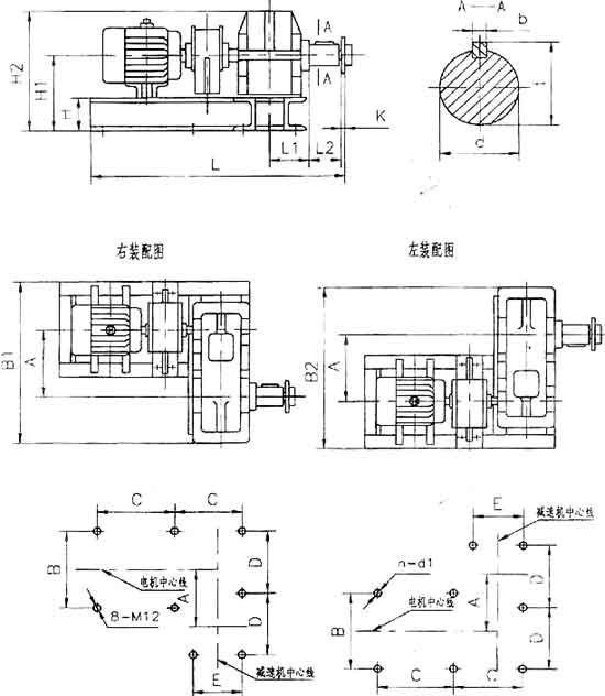 右裝一站在電動機尾部向前看,減速器低速軸在電動機的右側(cè)。