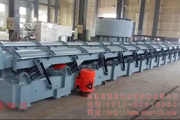 ??SZF型慣性振動熱料輸送機是一種兼有鎖風功能長距離輸送設備。SZF型慣性振動輸送機適用于輸送各種中等塊度以正反散粒狀物料及水平輸送(≤500℃)高溫高磨耗物料,如烘干熱礦渣、水泥熟料等。適用于水泥立窯窯下,做料封出料機。??SZF型慣性振動輸送機采用兩臺振動電機作為激振動源,運用自同步原理,兩臺振動電機反向轉動,使輸送機底部平衡架產生往復振動,經過主振簧與導向板簧的作用,帶動上部輸送槽振動,從而達到輸送物料的目的。SZF型慣性振動輸送機是一種通用輸送機械,除用于水泥行業外,還可用于冶金、礦山、化工、電力等行業,是一種理想的新型輸送設備。